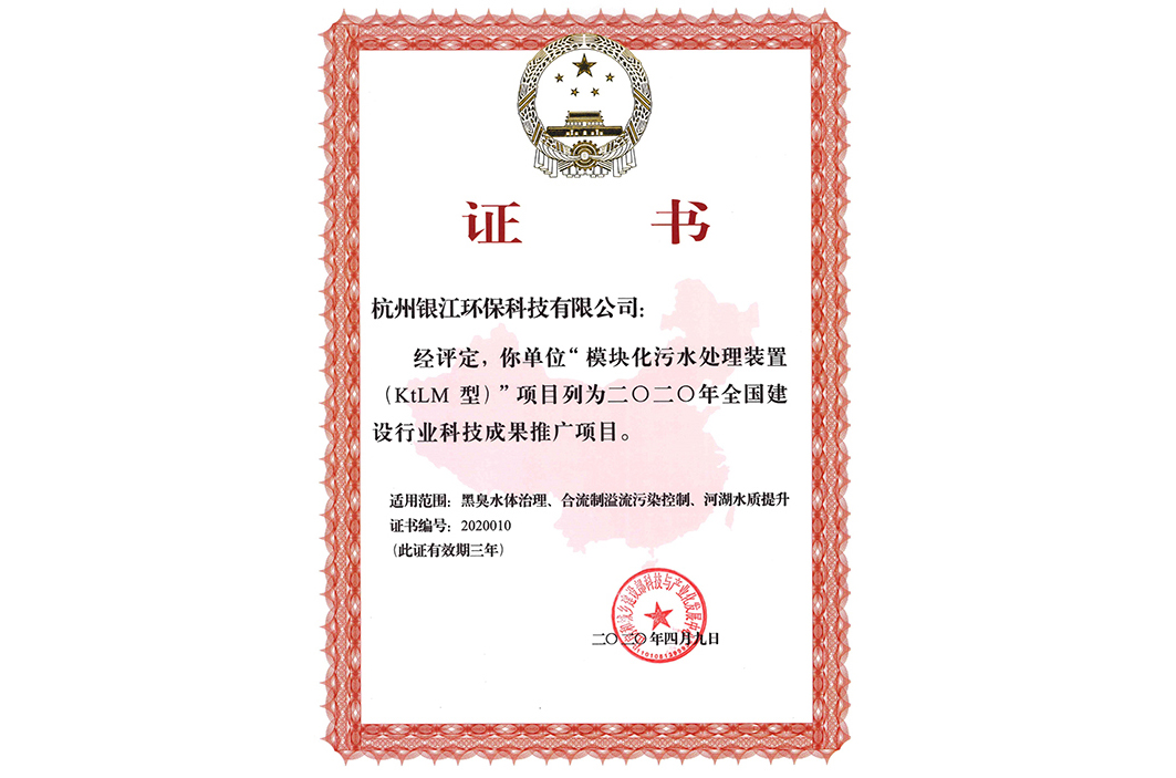 銀江環保“模塊化污水處理裝置(KtLM型)”列入全國建設行業科技成果推廣項目