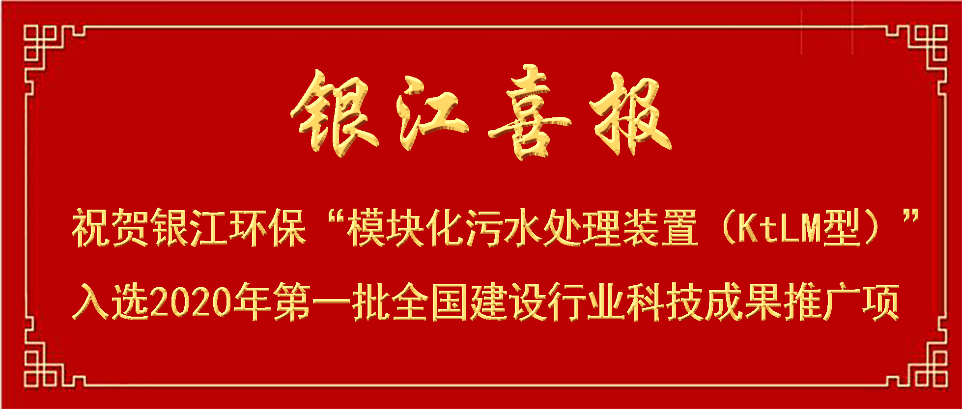 銀江環(huán)保模塊化污水處理裝置(KtLM型)入選2020年第一批全國建設(shè)行業(yè)科技成果推廣項目