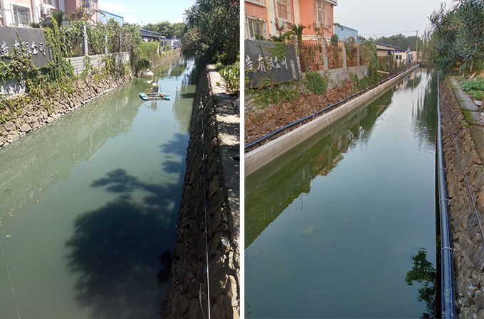 畢家支河治理中、治理后水質對比