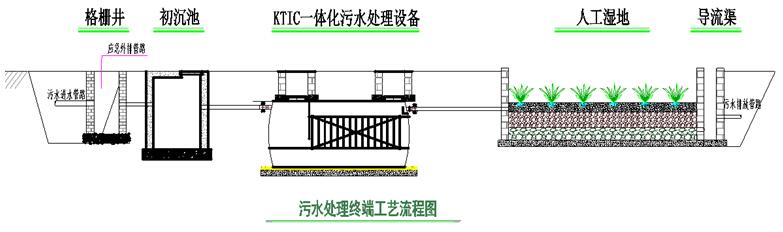 項目概況:安??h竹江鄉店上村終端設計采用多戶式集中處理,設置一座污水處理終端,該終端設計污水量為150t/d,采用KTIC一體化污水處理設備+人工濕地處理工藝,經處理后生活污水達到《城鎮污水處理廠污染物排放標準》(GB18918-2002)一級標準,出水外排。終端總占地面積308平方米,施工總使用面積450平方米。