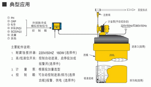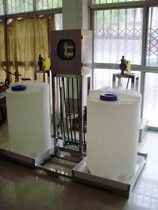 銀江自動加藥裝置時以一個專用中央控制器為核心,并配置1-3只藥桶、攪拌器、液位器、計量泵、檢測探頭、電磁閥及其他外部信號輸出設備等構成。以循環(huán)冷卻水的電導率只為檢測對象,通過測定循環(huán)水的電導率值來衡量水質質量,發(fā)出加藥、排污信號,并通過外部設備完成加藥、排污,從而實現(xiàn)系統(tǒng)的自動運行,在實現(xiàn)殺菌滅藻、阻垢、緩蝕的同時保持水體一定的濃縮倍數(shù)。主機及主要部件均采用原裝進口產品。