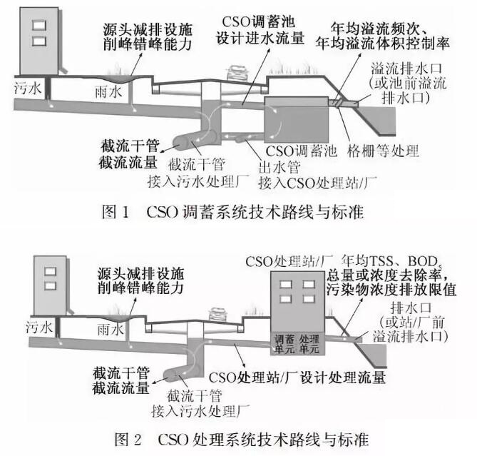 在美國,以水環境質量為目標,依托從國家到各州的法規、NPDES許可制度以及CSO長期控制規劃,一般以年均溢流頻次、年均溢流體積控制率作為CSO調蓄系統的控制標準,以年均TSS、BOD5總量或濃度去除率、糞大腸桿菌等污染物指標的濃度排放限值作為CSO處理系統的控制標準。