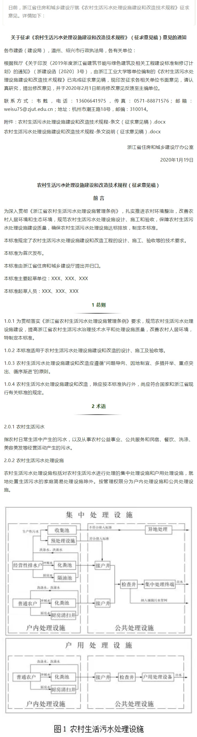 浙江省《農(nóng)村生活污水處理設(shè)施建設(shè)和改造技術(shù)規(guī)程》(征求意見稿)發(fā)布日期:2020-03-08