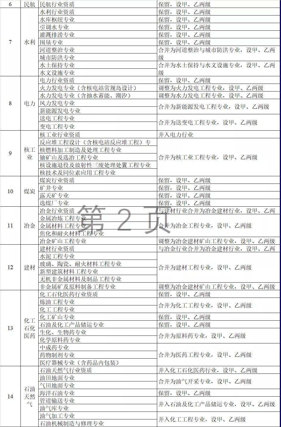 2.改革后建設工程企業資質分類分級表