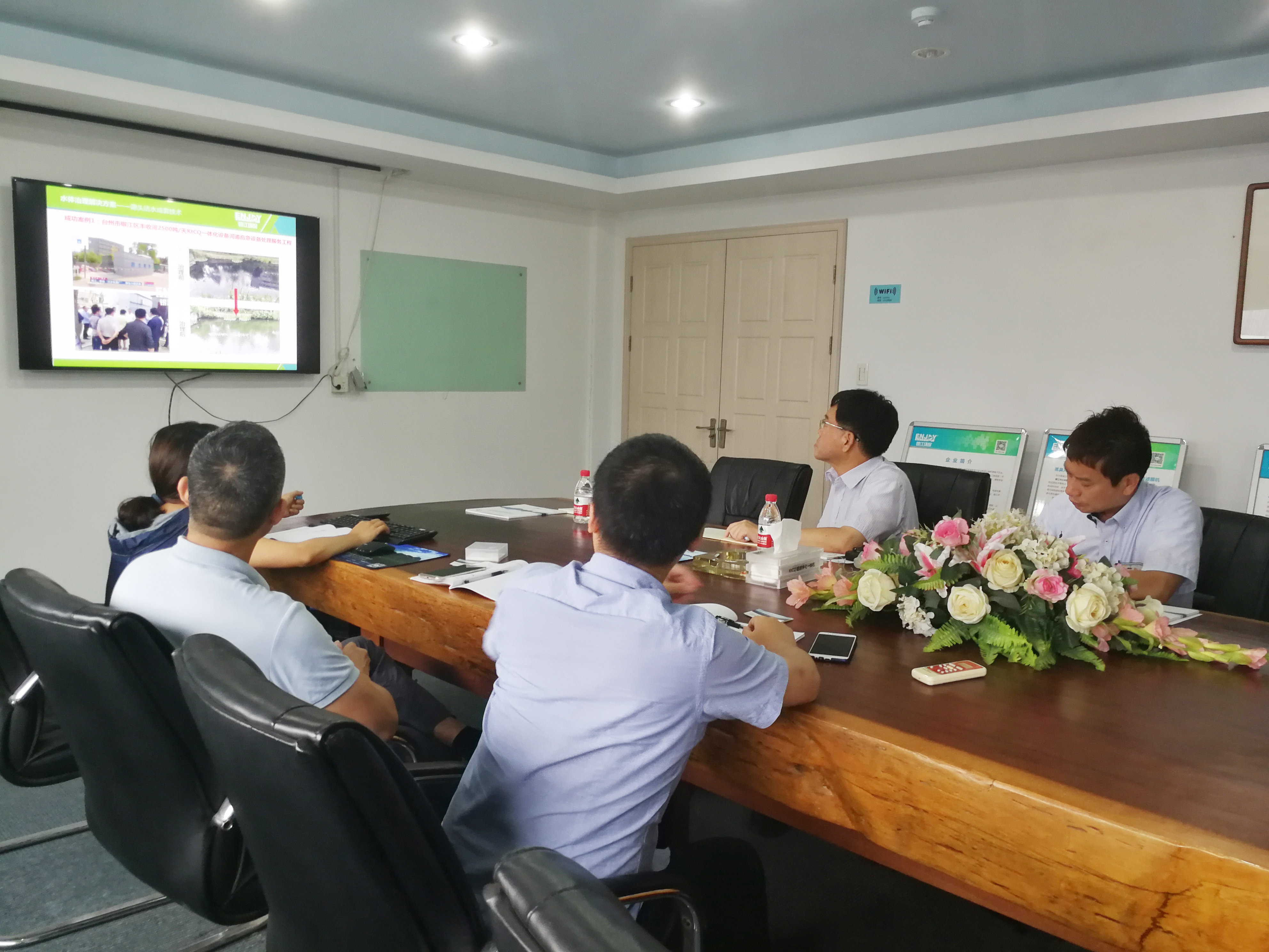 首先,技術部宋陵超向佐野先生等介紹了公司情況,從銀江治水理念,銀江環保核心技術,到銀江成功案例,均令佐野先生贊賞不已。