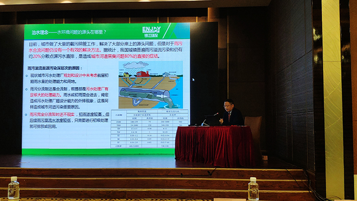 銀江環保董事長葉偉武先生做了精彩發言,現場交流銀江源頭活水技術——溢流污染解決方案。