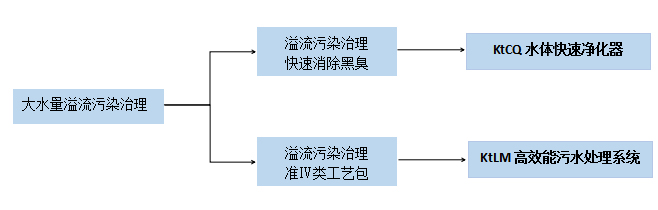 銀江環保KtCSO城市溢流污染分散處理解決方案主要由3項核心技術組成:KtIC快速生化一體機、KtCQ水體快速凈化器、KtLM高效能污水處理系統。
