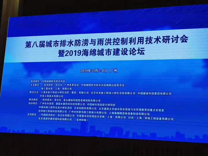 2019年11月7日上午,“第八屆城市排水防澇與雨水控制利用技術(shù)研討會暨2019海綿城市建設(shè)論壇”在廣州順利召開。