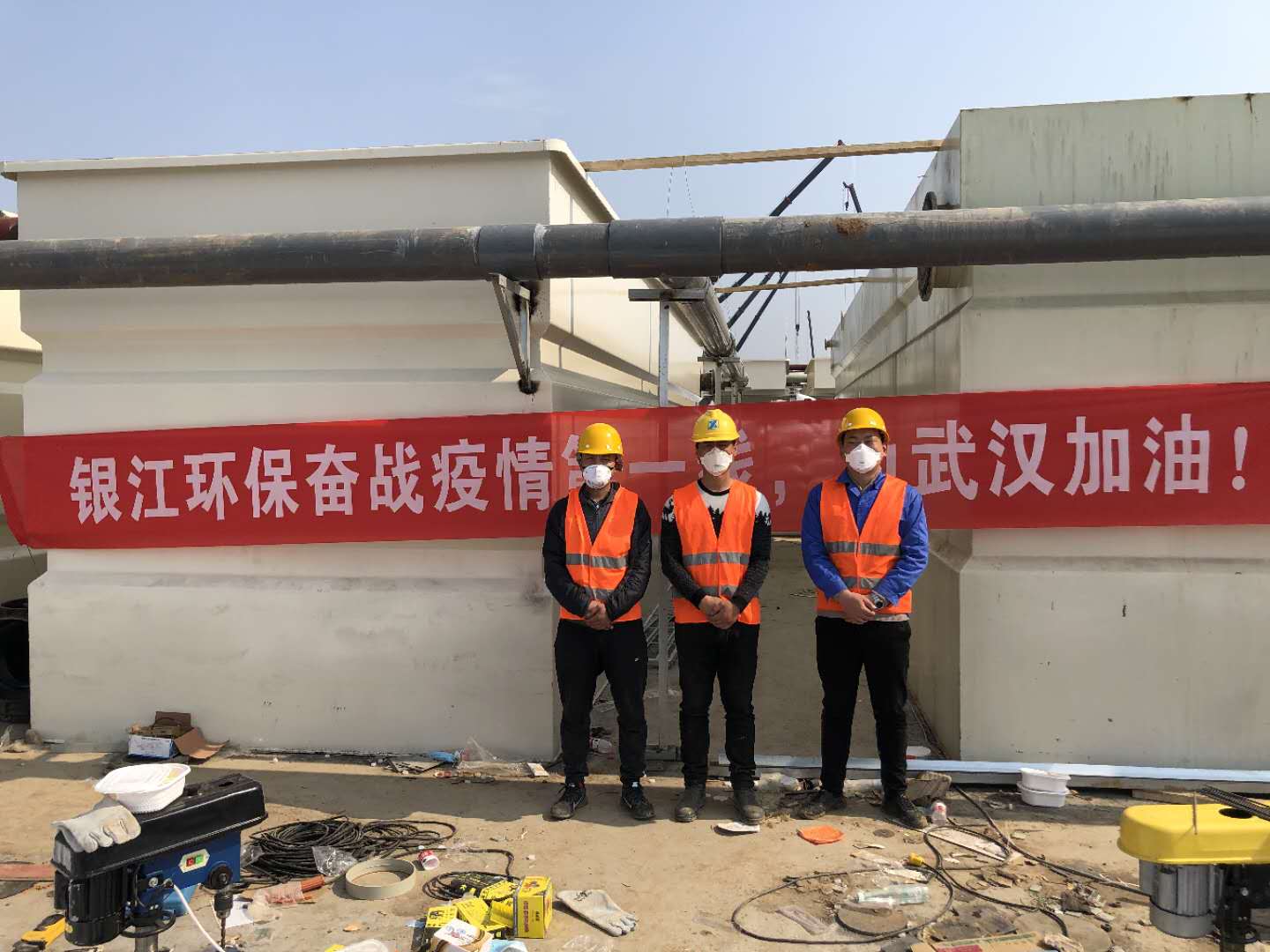 5位抗“疫”先鋒肩負(fù)責(zé)任和使命,放棄春節(jié)與家人團(tuán)聚,驅(qū)車上千公里,前往疫情中心武漢,憑借高超專業(yè)技能和社會(huì)責(zé)任,挑戰(zhàn)極限——3天完成兩山醫(yī)院污水處理項(xiàng)目安裝任務(wù)。