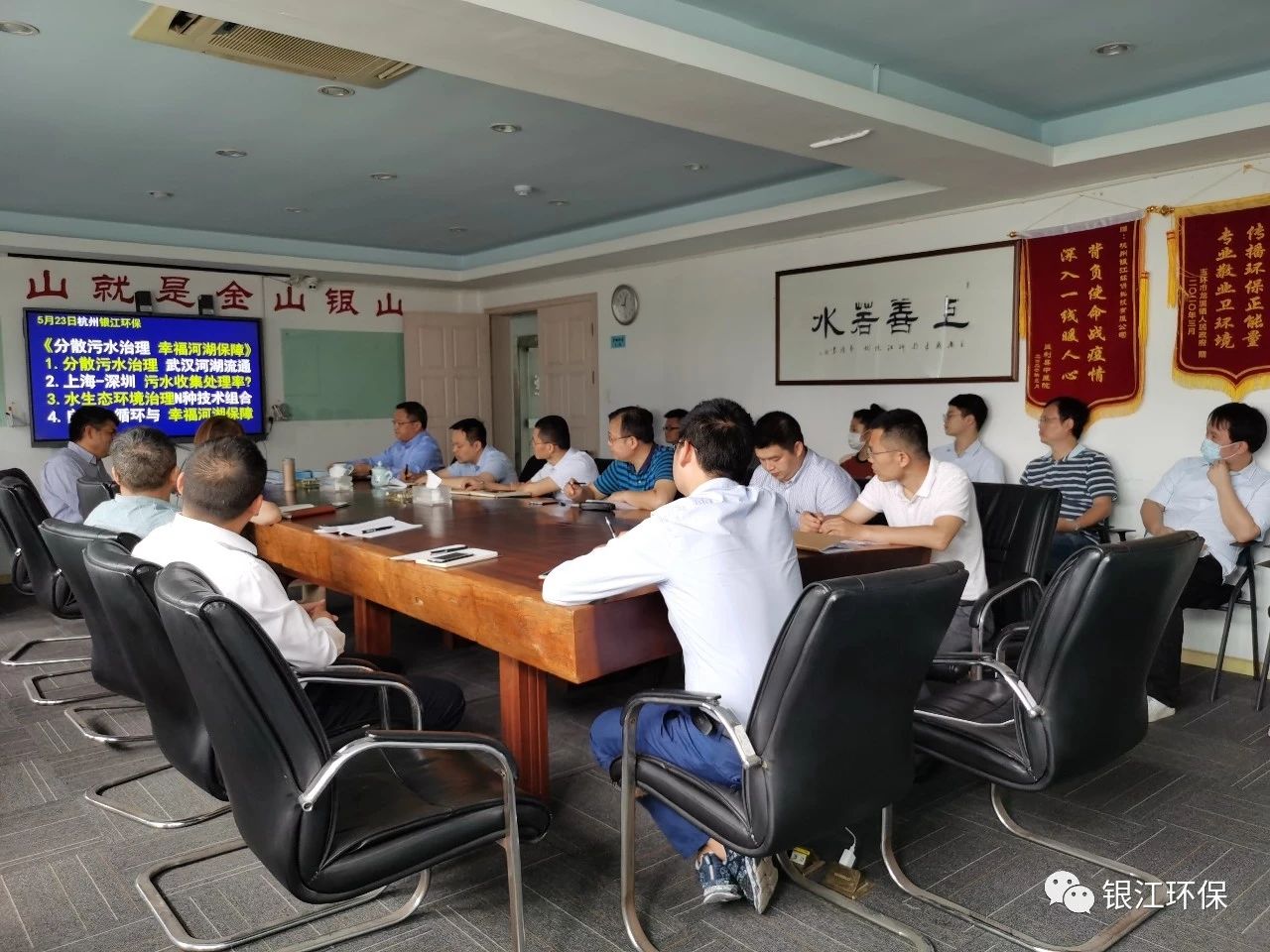 2020年5月23日上午9點,銀江環保組織技術管理中心及銷售管理中心全員進行了《分散污水治理 幸福河湖保障》主題培訓,榮幸請到上海市水務規劃設計研究院副總工程師趙敏華給團隊進行培訓,同時邀請中國電建集團華東院生態環境院副院長魏俊參加會議,會議主題分為以下5個方面: