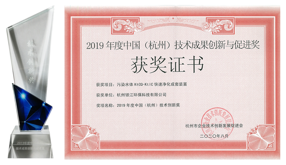 9月1日,銀江環(huán)保應(yīng)邀參加杭州市技術(shù)創(chuàng)新發(fā)展促進(jìn)會(huì)第二屆三次會(huì)員大會(huì)并領(lǐng)取獎(jiǎng)項(xiàng)。銀江環(huán)保污染水體KtCQ-KtIC快速凈化成套裝置榮獲“2019年度中國(guó)(杭州)技術(shù)成果創(chuàng)新與促進(jìn)獎(jiǎng)”!
