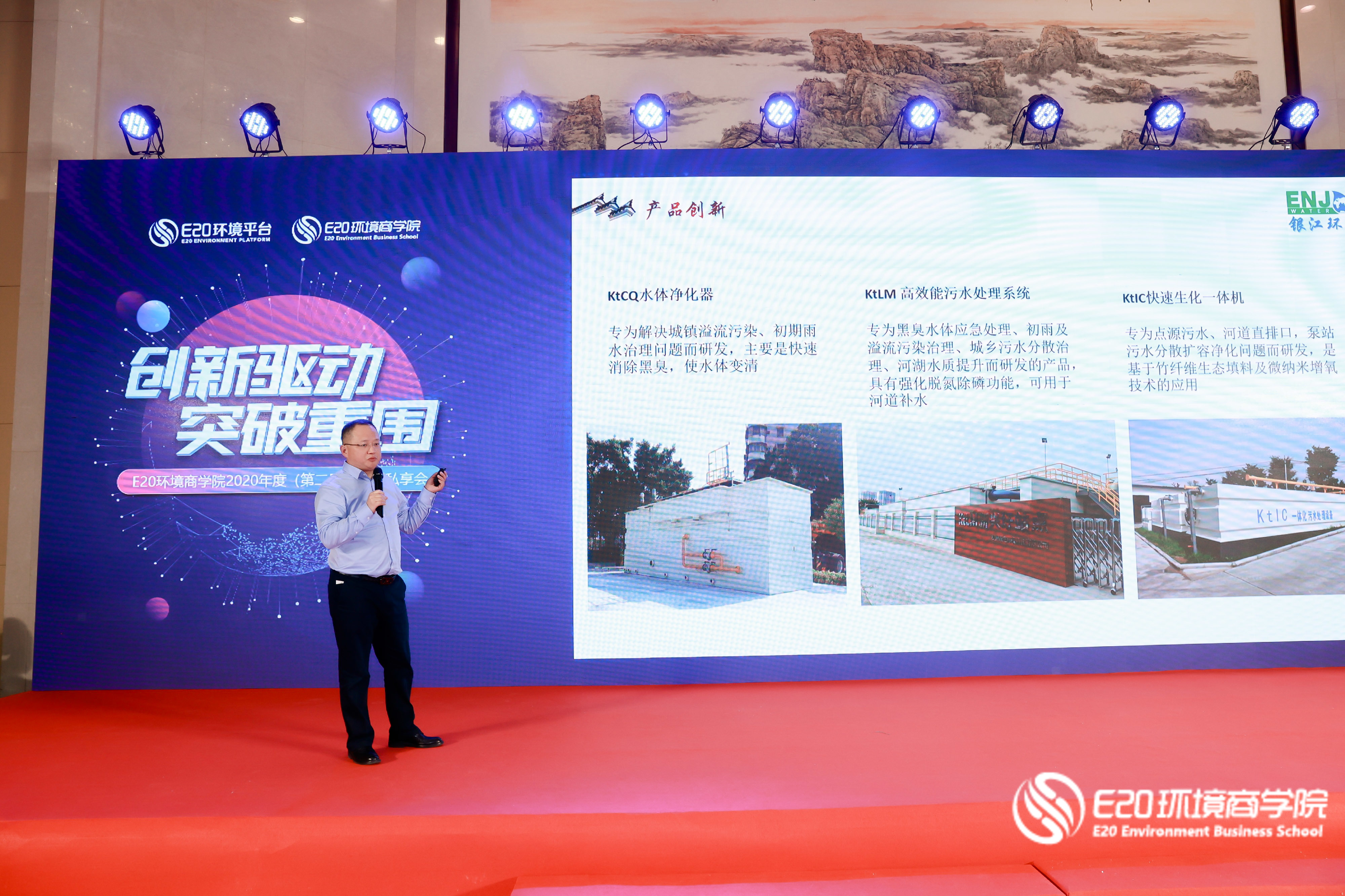 感恩年會上進行了E20環境商學院2020年度(第二屆)創新人物榜單揭曉與頒獎。銀江環保董事長葉偉武憑借“產品創新、模式創新”贏取超高人氣,現場捧回“十大創新人物”、“創新分享獎”、“最佳人氣獎”三大獎項。