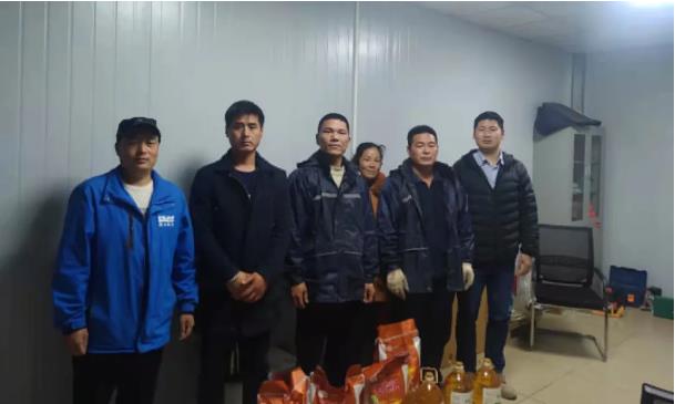 “大家辛苦了,我代表公司向你們表示崇高的敬意并祝你們新年快樂。”在湛江項目現場,支部書記蔣肖龍向堅守在一線的員工送去誠摯的祝福,并代表公司將食用油、大米等慰問品送到一線工人手中。同時叮囑大家加強安全意識,在疫情防控期間注意個人防護,防寒保暖,合理安排工作休息時間。大家表示非常感謝領導的關心和關懷,將以此為動力,安全、優質、高效完成施工和運維任務。