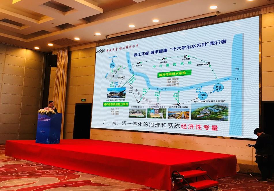 會議第二天上午,銀江環(huán)保的技術(shù)總監(jiān)仝武剛發(fā)表主題為《構(gòu)建綠色低碳排水系統(tǒng)——城市水環(huán)境提升新方案》的報告,深得與會專家們的認可。結(jié)合行業(yè)背景,該報告重點闡述了銀江環(huán)保構(gòu)建城市綠色低碳排水系統(tǒng)的理念以及在污水資源化領(lǐng)域的核心產(chǎn)品、技術(shù)方案和成功案例。銀江環(huán)保的五大核心產(chǎn)品:KtCQ水體凈化器、KtLM強化脫氮除磷裝備、KtIC一體化污水處理裝備、KtYY醫(yī)療污水處理裝備和銀江智慧水務(wù)系統(tǒng),在行業(yè)內(nèi)得到廣泛的應(yīng)用。針對行業(yè)痛點,我們不斷升級優(yōu)化產(chǎn)品,提高市場的契合度,給客戶們提供最具價值的服務(wù)。