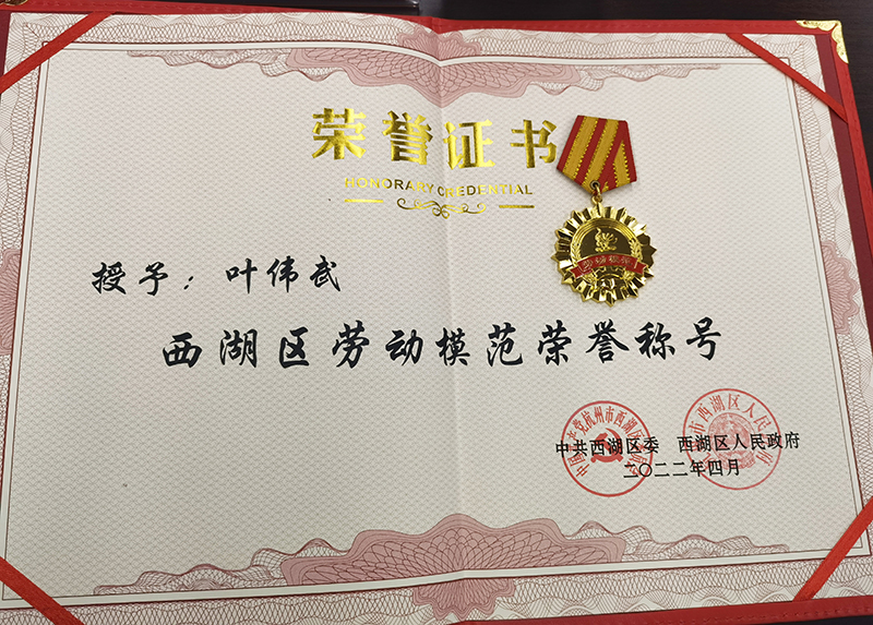 董事長葉偉武榮獲西湖區(qū)勞動模范稱號發(fā)布日期:2022-05-10