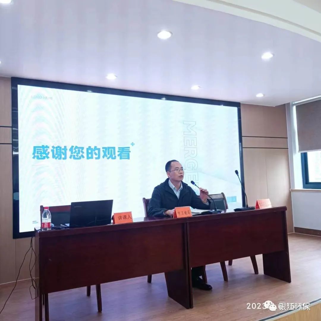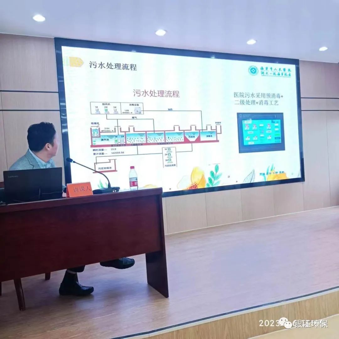 銀江環(huán)保技術(shù)總監(jiān)仝武剛(原浙江省環(huán)科院高工)作為技術(shù)專家進(jìn)行《醫(yī)院污水處理工藝講解》主題培訓(xùn)。