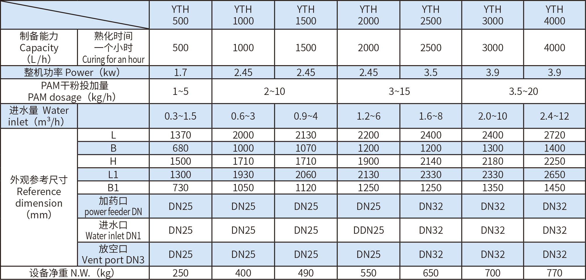 集配料 、溶解 、投加于一體,全自動運行,干投機和加熱裝 置的巧妙設計可減少結塊現象;