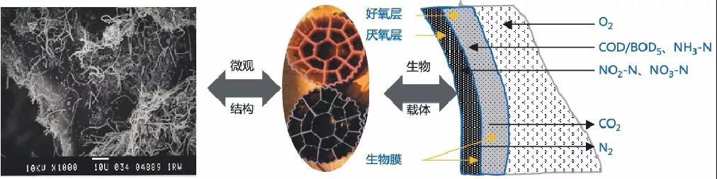 KtIC一體化污水處理設(shè)備,采用多級(jí)式MBBR & SBBR組合工藝,結(jié)合國內(nèi)外先進(jìn)的高效溶氧裝置、高效流化傳質(zhì)系統(tǒng)與均質(zhì)布水系統(tǒng),通過培育附著在比表面積超過800 m2/m3的BIO-FORM®納米生物載體上的混合兼性菌種,構(gòu)成BIO-NET生態(tài)系統(tǒng)。其以革蘭氏陽性芽孢桿菌(Bacillussubtilhls)為主、光合細(xì)菌 (Photosyntheticbacteria)、硝化、反硝化細(xì)菌等混合菌劑為輔的高效菌體,高效降解污/廢水中的總氮、 COD及氨氮等污染物,具有高效、耐沖擊、施工簡(jiǎn)便、占地少等技術(shù)優(yōu)勢(shì)。
